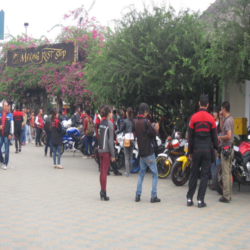 Motorbikes visit Mekong Rest Stop Tien Giang
