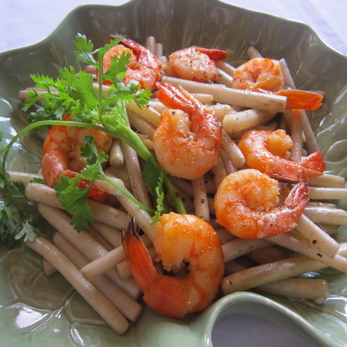 새우, 쇠고기 또는 돼지고기와 함께 마늘을 곁들인 연근 볶음